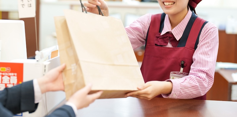 お客さまをお出迎えし、笑顔で挨拶します。
