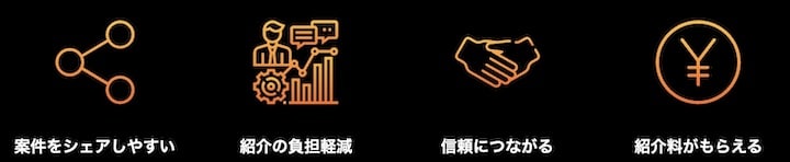 最後の特徴は、案件を紹介してプロジェクトへの参画が決まった際に、紹介料がもらえることです。