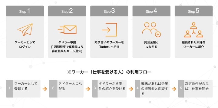 知り合いのワーカー(タドラー)から案件の紹介を受けられます。