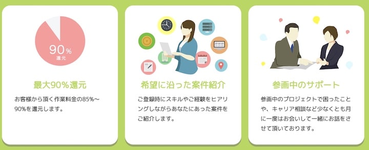 初めてエージェントを利用する人や、フリーランスデビューしたばかりの人にとっても安心して利用できる、心強いサービスです。