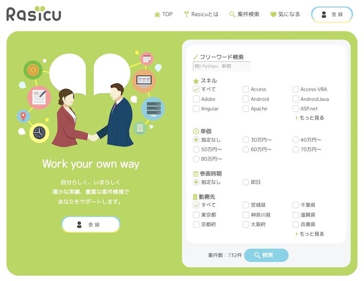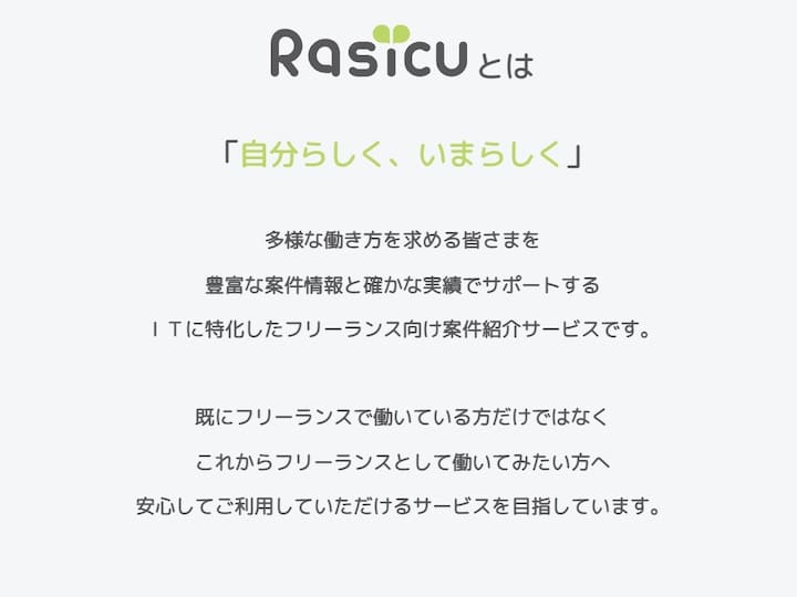 Rasicuは、ITに特化したフリーランス向け案件紹介サービスです。