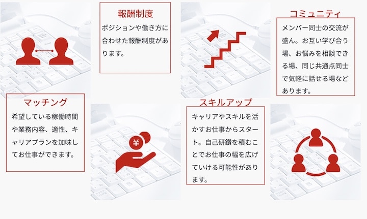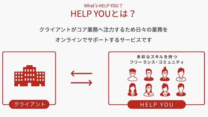 HELP YOUとは、バックオフィス業務を中心とした「オンラインアシスタント秘書サービス」。時間や場所に制約されずに働きたい人のためのお仕事プラットフォームです。