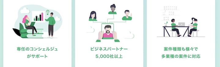 専任のコンシェルジュが案件獲得から紹介、稼働中のサポートまで担当。担当者が変更することなく一気通貫でサポートしてくれるので、信頼関係を構築でき安心してサポートを任せられます。