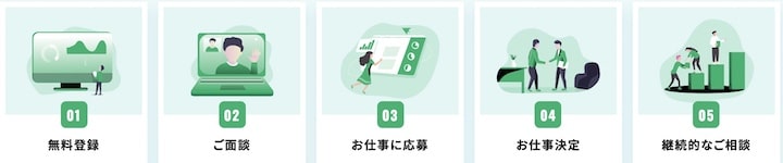 クライアント企業との面接を行い、条件に合意できれば案件参画が決定します。稼働後も円滑に仕事ができるようサポートしてくれるので安心です。