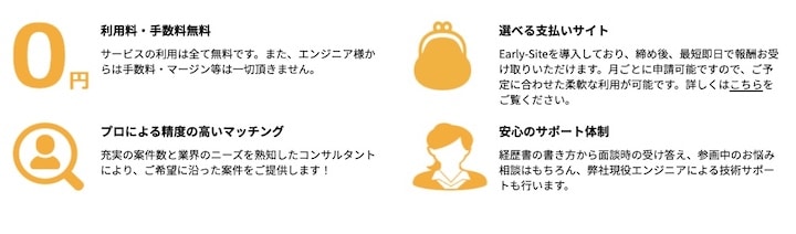 サービスを運営している株式会社EVERRISEのメイン事業は、システム開発やITコンサルティング。IT業界に精通しているからこそ、専門的な視点でフリーランスエンジニアをサポートしてくれます。