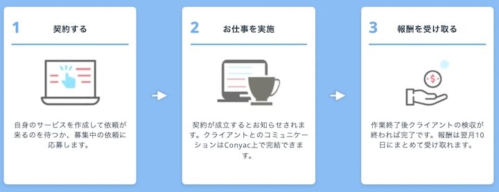 Conyacのクライアントはフリーランサーを検索して仕事を依頼します。自分のプロフィール登録を魅力的になるよう工夫してクライアントにアピールしましょう。2.募集中の依頼に応募する