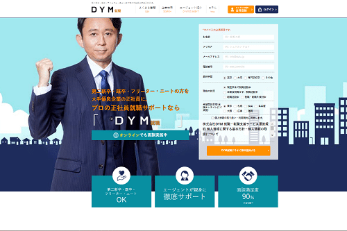 DYM就職は、社会人経験が浅い人の正社員就職をサポートする転職エージェントです。主に第二新卒や既卒、フリーター、ニートの人が対象となります。