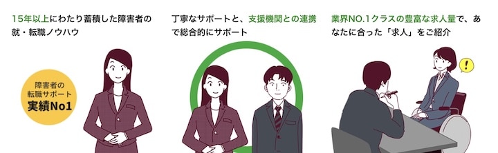 15年以上にわたる障がい者の就職・転職サポートのノウハウを活かし、豊富な求人・安心感のあるしっかりとしたサポート体制を強みに数多くの内定者を出しています。