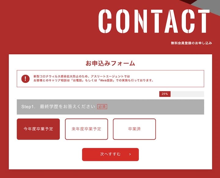 登録完了するとアスリートエージェントのスタッフから直接連絡がきます。