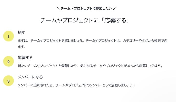 そのため、案件に応募するというよりかは、気になるチームを探して、チームで仕事を行うというイメージです。