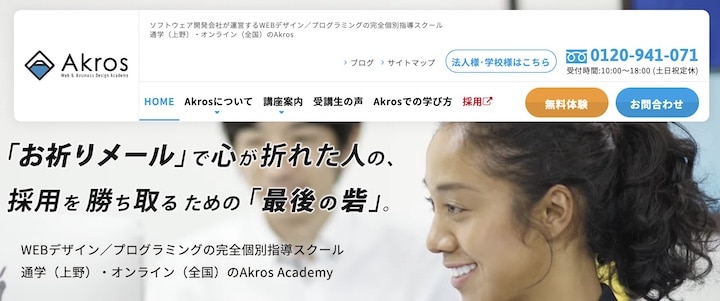 株式会社A-PLUSが運営するAkros(アクロス)は、WEBデザイン・プログラミング・ビジネススキルが学べるスクールです。