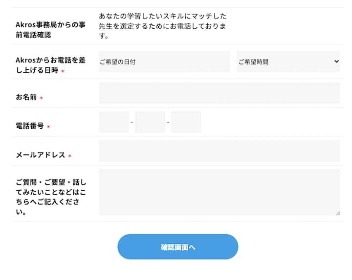 公式サイトの「体験お申込み」もしくは「無料レッスン申し込み」ボタンから、体験レッスンの日程調整をします。
