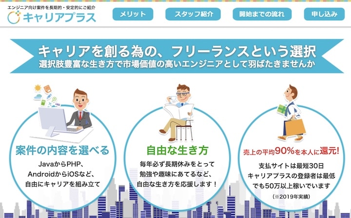 キャリアプラスは、株式会社リーデックスが運用するフリーランスのエンジニアに特化したマッチングサービスです。