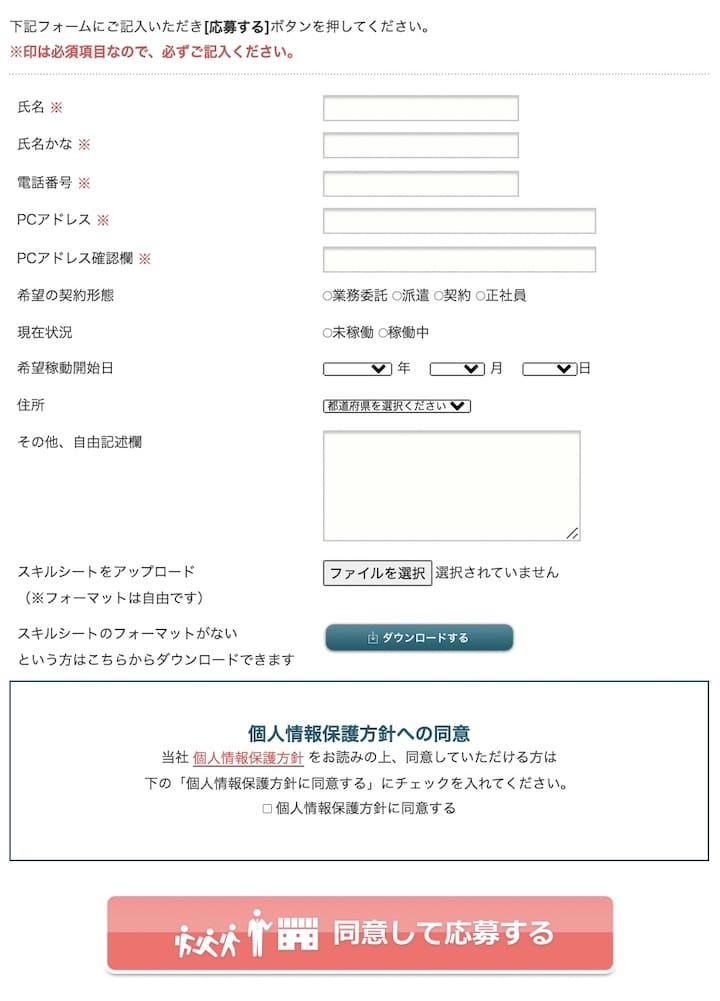 以上を記入し、個人情報保護方針に同意し、応募しましょう。