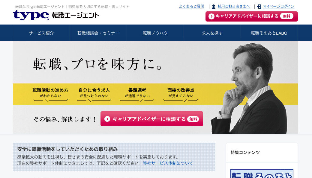 type転職エージェントは「納得感のある転職」の実現を大切にしている転職エージェント。1都3県を中心に2万件以上の非公開求人を保有しています。