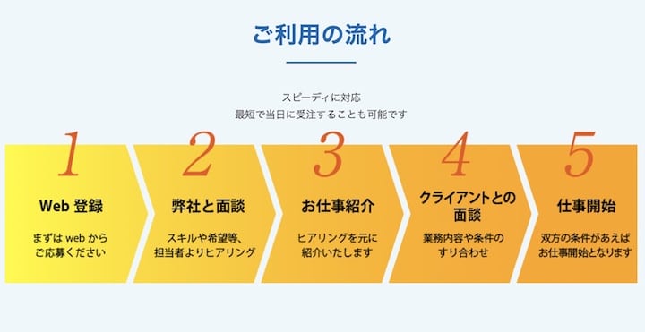 自分が求めていた条件をすべてクリアしていました。求人の数が少なかったことはマイナスポイントになってしまいましたが、今の時代に合った求人だったので、フリーランスとして勤める人たちには利用しやすいと思います。