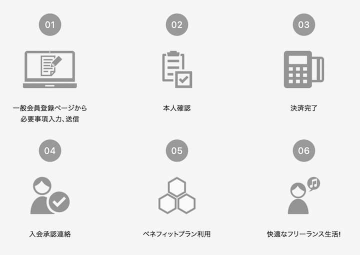 フリーランスにありがちなリスクをカバーしてくれる保険や、福利厚生サービス、コワーキングスペースの優待サービスなどがあります。フリーランスに嬉しいライフラインが充実していると評判です。