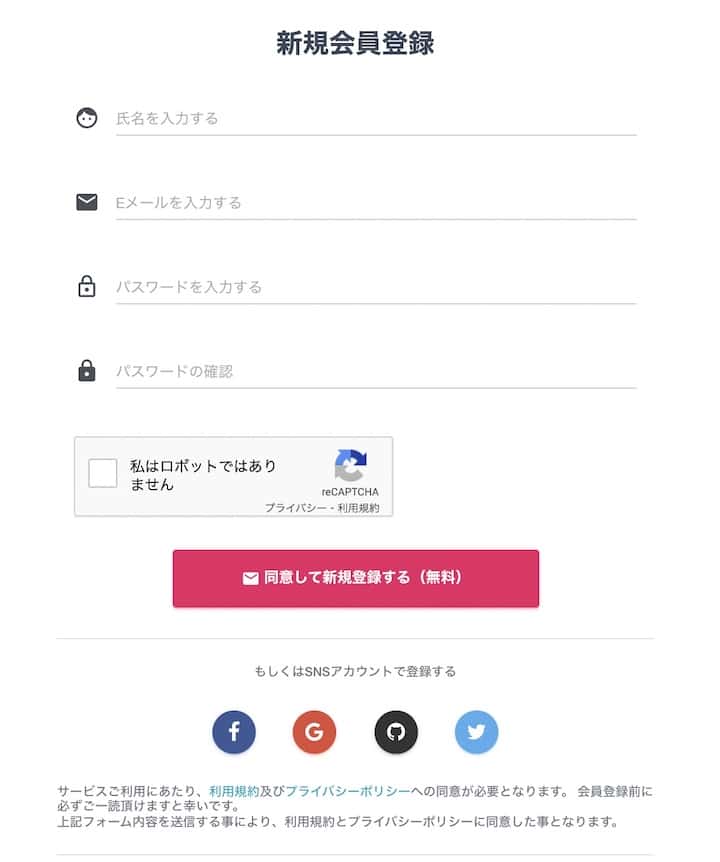 まずは公式サイトの「新規会員登録」から、以下の項目を入力します。